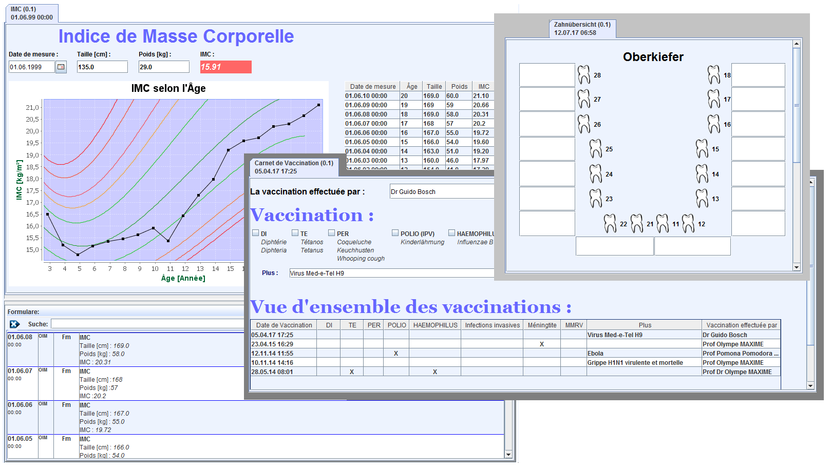 Weitere Daten wie die wichtigen Kontakte des Patienten (Rubrik “personnes tierces”) sowie Impfbucheinträge und Wachtumsangaben bei Kindern liegen zurzeit nicht strukturiert in GECAMed vor und können deshalb auch nicht ins Formular übernommen werden. Dies kann sich aber in naher Zukunft noch ändern, da der Formular-Editor von GECAMed (Siehe Benutzerhandbuch) genau diese Informationen abdecken kann.