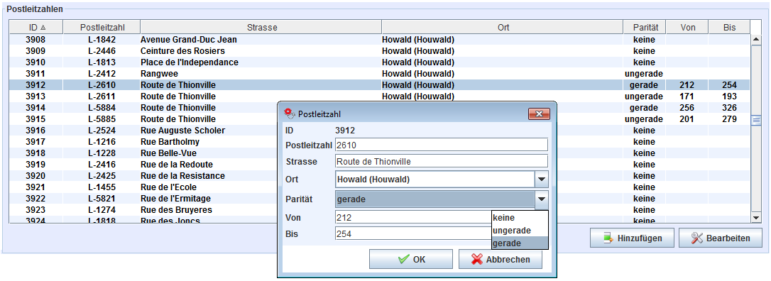 Seit einigen Jahren ist es uns nicht mehr gelungen, neue Adressen-Updates von den P&T zu bekommen (letzter Stand: 16/12/2011). Da sich die Adressen aber trotzdem weiterentwickeln haben wir auf Anfrage einiger Benutzer eine manuelle Verwaltung der Adressen eingebaut. Es könenn zwei verschiedene Arten von Adressdaten gepflegt werden: