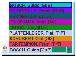 Die Auswahlbox enthält neben dem Namen des Arztes auch dessen Kürzel (erste beiden Buchstaben des Vornamens + erster Buchstabe des Nachnamens), mit dem z.B. alle medizinischen Daten in der Patienten-Historie gekennzeichnet sind.