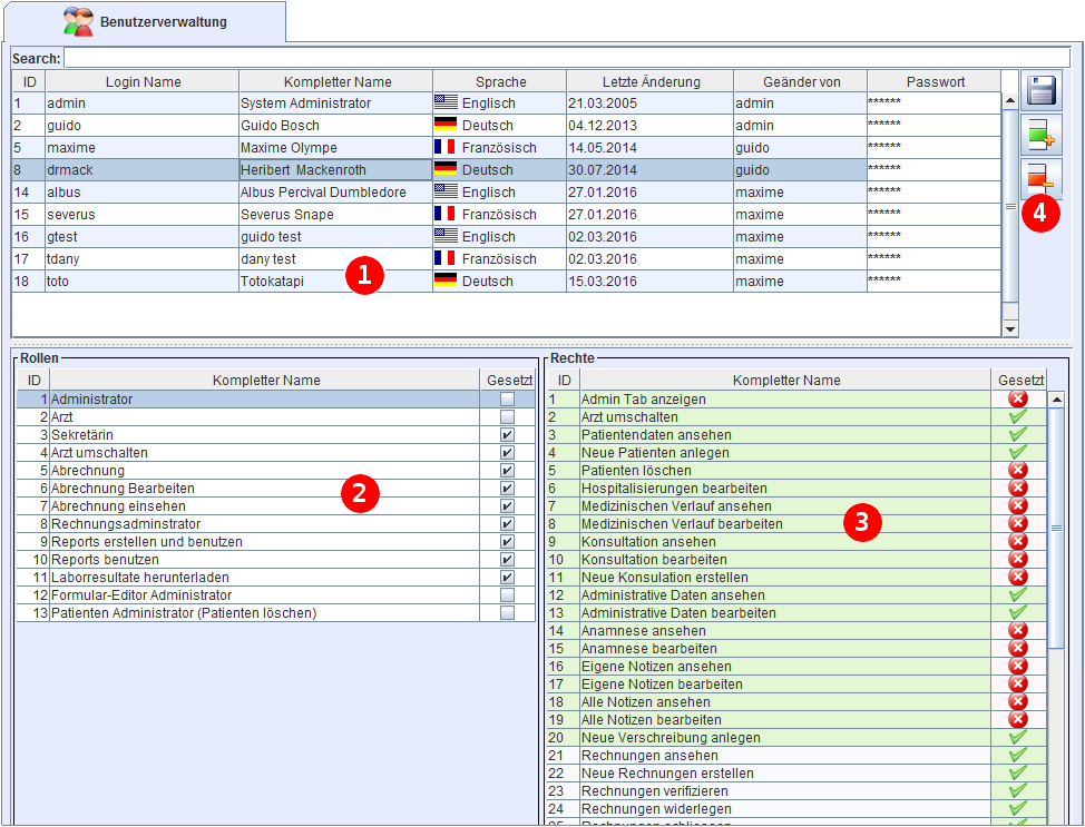 In GECAMed sind alle Rollen festgelegt und könen auch nicht vom Administrator geändert werden.