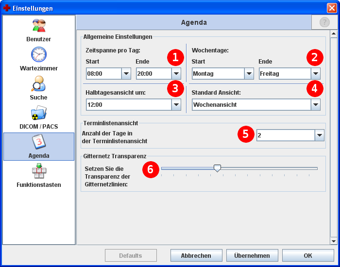 | Hier können Sie die Transparenz der Gitternetzlinien der Terminansicht einstellen. |