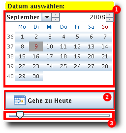 um zu einem gewünschten Datum zu springen. Falls die Terminansicht eine Woche oder einen Monat anzeigt, wird dieser von dem gewählten Tag angezeigt.