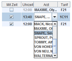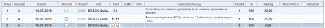 Normalerweise werden auf einer Rechnung immer nur Leistungen eines einzigen Arztes verbucht. Standardmässig wird deshalb das Feld mit dem im Rechnungskopf angegebenen Arzt gefüllt. Insbesondere in Gemeinschaftspraxen und in Krankenhäusern kann es aber vorkommen, dass alle Leistungen für einen Patienten auf einer einzigen Rechnung zusammengefasst werden. Dabei sollte dann auch zu jeder Leistung der behandelnde Arzt eingetragen werden (Abbildung 6).