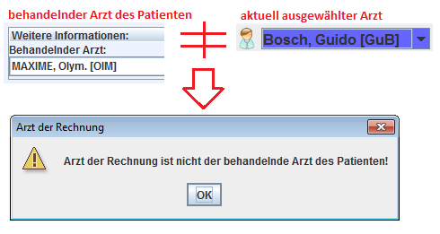 Der ausstellende Arzt der Rechnung. Dieses Feld ist von Bedeutung in Praxen mit mehreren Ärzten. Beim Anlegen einer neuer Rechnung wird der aktuelle Arzt übernommen.
