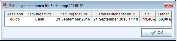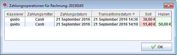 eingesehen werden. Für die in unserem Beispiel verwendete Rechnung ergibt sich z.B. die folgende Liste von Transaktionen: