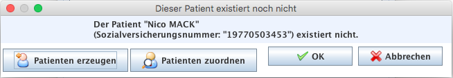 Wenn der Patient nicht zugeordnet werden konnte (keine Übereinstimmung bei der Matrikel) erscheint folgender Dialog: