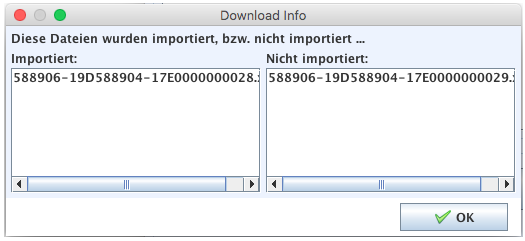 Am Ende des Importier-Vorganges erscheint eine Übersicht mit den importierten bzw. den nicht importierten laborresultaten: