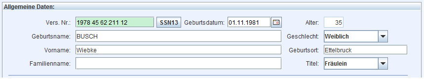 Allgemeine Daten wie Sozialversicherungsnummer, Name, Titel und Geschlecht