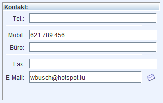 Tragen Sie in die Felder des vierten Bereiches die möglichen Kontaktdaten ein. Diese bestehen aus Telefon-, Fax- und Mobilnummern, sowie einer Emailadresse.
