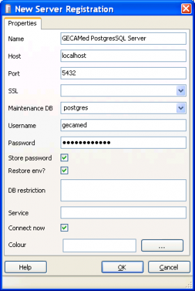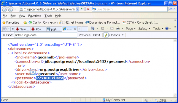 Das Passwort für die Rolle postgres, bzw. postgres_gecamed finden Sie unter «JBoss Verzeichnis»/server/default/conf/gecamed_server.properties.