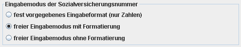 Bei der Erfassung und Anzeige der Sozialversicherungsnummer kann zwischen drei Modi gewählt werden: