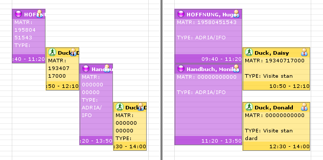 On reconnaît facilement si in RDV est déjà connecté à un patient par la présence ou absence d'une petite icône de patient dans le coin droit supérieur de la case du RDV. Sur les RDV non-connectés cette icône manque.