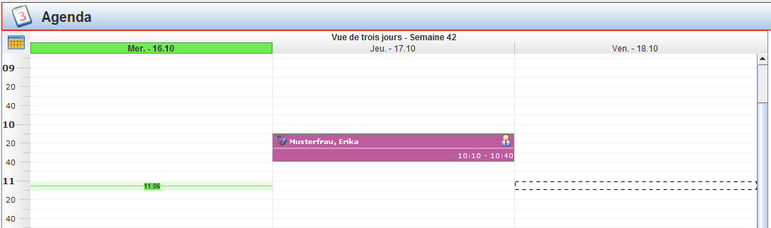 La seconde manière consiste à effectuer un double-clic dans la cellule représentant le début du rendez-vous (figure 10). L'horaire de début est héritée de la position de la cellule. L'horaire de fin est calculé en fonction de la durée du type de rendez-vous par défaut.