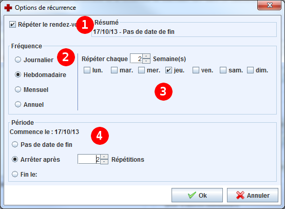 | Cocher tout d'abord la case pour faire de ce rendez-vous pour un rendez-vous récurrent. | |