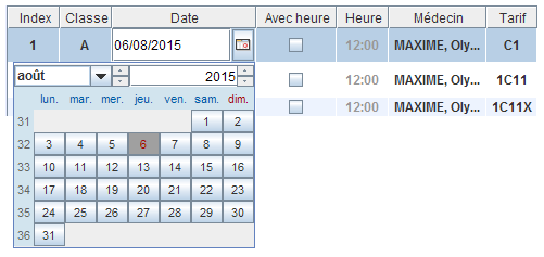 Pour changer la date du tarif il suffit de cliquer avec le bouton gauche de la souris sur la date.