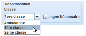 En cas d'hospitalisation un patient peut demander un traitement de 1ère classe. On sélectionne alors 1ère classe dans l'entête de l'écran de saisie. Si cette zone de données n'est pas disponible, il faut d'abord l'activer dans les réglages globaux.