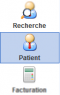 Après vous être identifié avec succès, il faut ouvrir le module patient. Pour ce faire, cliquer dans la barre de menus à gauche de l'icône du module patient. La zone du module est maintenant remplacée par la recherche de module de patients. Vous voyez le formulaire de saisie d'un nouveau patient. Il est divisé en cinq zones (voir figure 1 ). Les régions sont décrites plus en détails ci-dessous.