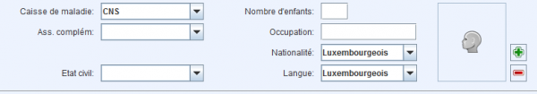 Dans cette section, vous pouvez choisir dans une liste l'affiliation du patient à une caisse d'assurance maladie et à une assurance complémentaire. Ces détails sont importants pour fournir des factures appropriées.