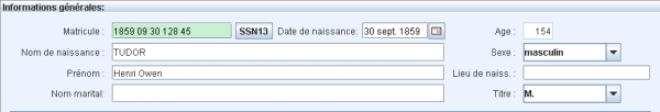 De plus, avec le bouton “SSN” à coté du champ de saisie du matricule (voir image plus loin) on peut demander le calcul automatique des deux chiffres manquants à partir dun matricule à 11 chiffres.