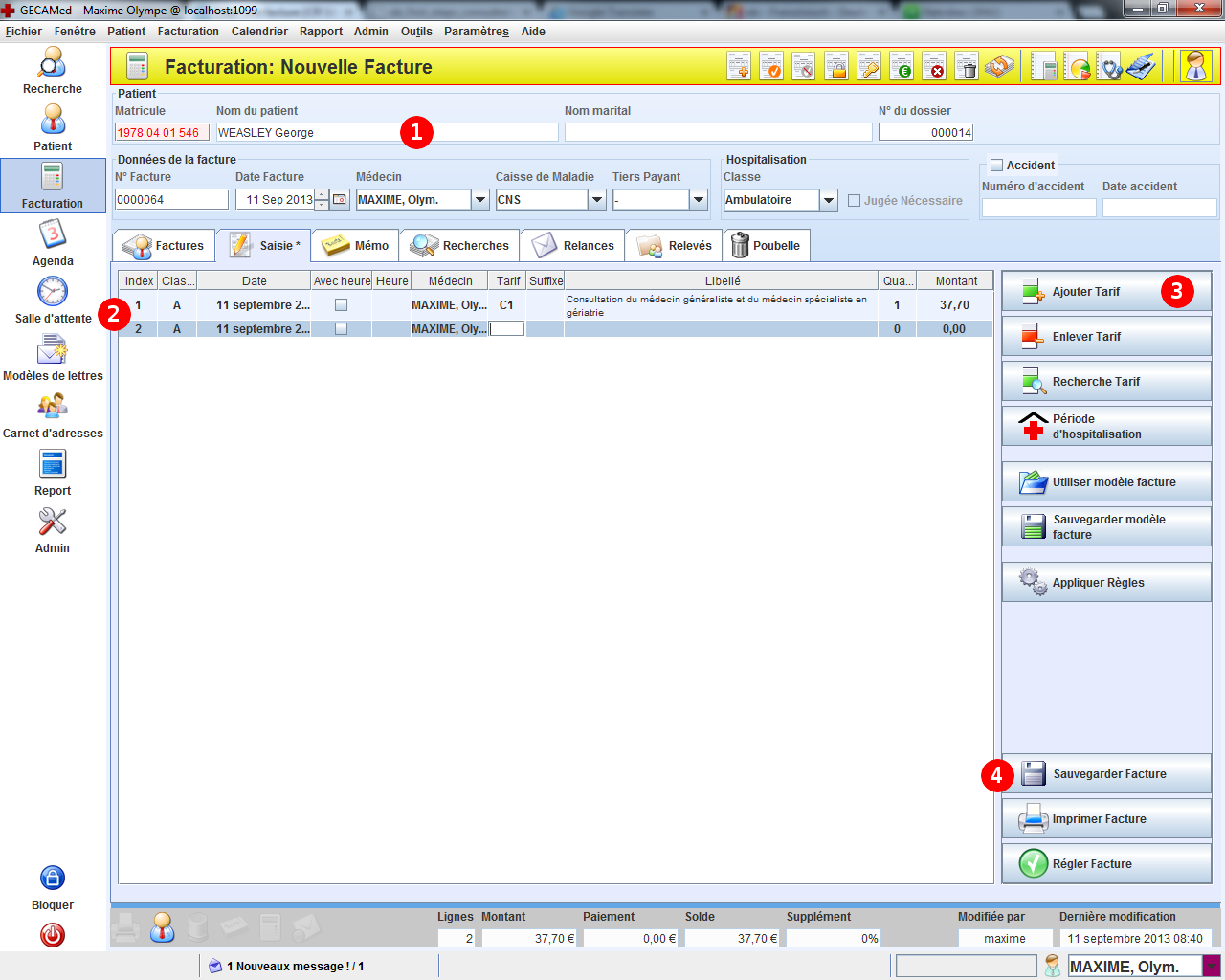 Maintenant que vous avez créé avec succès votre première consultation dans GECAMed, occupons-nous de la facturation.