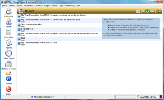Dans la suite, nous nous limitons à la description des fonctions du module de rapports et supposons que l'utilisateur dispose d'un niveau de connaissance suffisant en base de données.