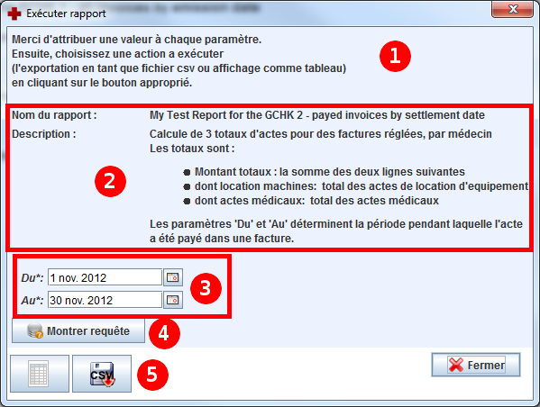 Avant de voir le résultat d'un rapport, vous devez encore configurer la boîte de dialogue «Exécuter des rapports» (voir figure 3). Vous devez également définir les paramètres en conséquence.