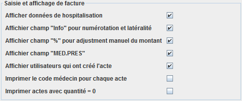 Cette option détermine si médecin créateur d'un acte est imprimé sur la facture ou non (colonne “MED”).
